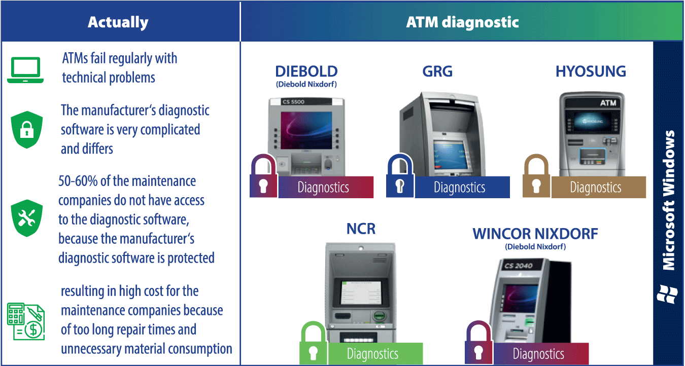 Multivendor Diagnostic: One fits all! For all ATM Vendors you will be able to use one tool.