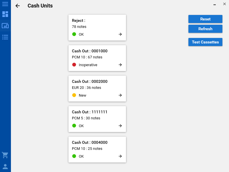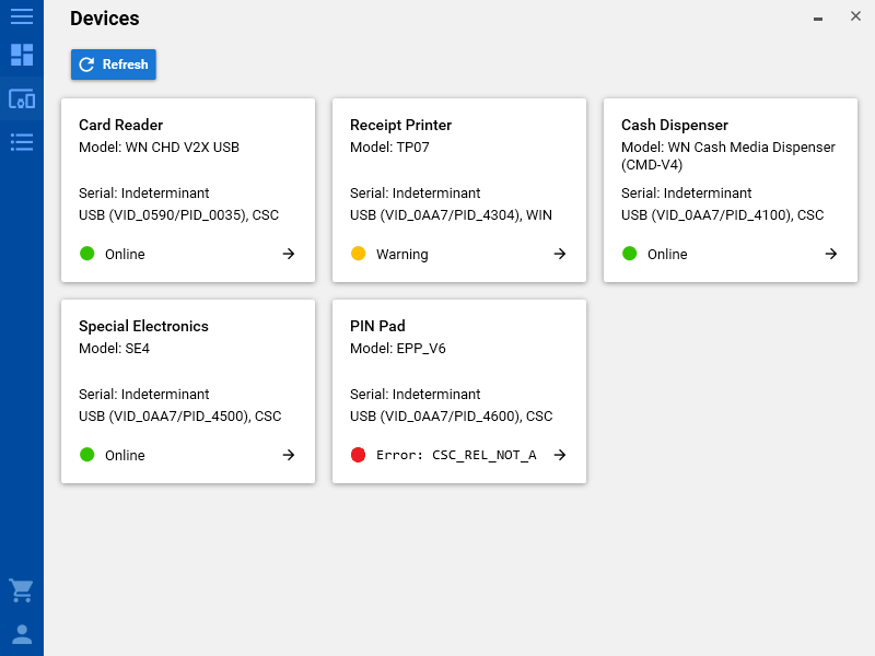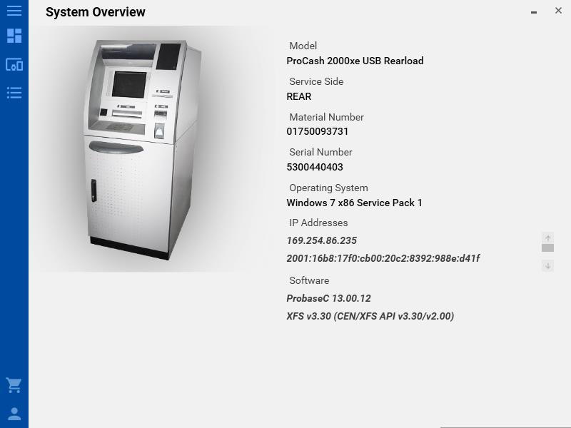 The current version supports the manufacturer Diebold Nixdorf with its products ProCashand CINEO. In the future Opteva and Diebold Series will be supported, followed by ATMs from NCR.