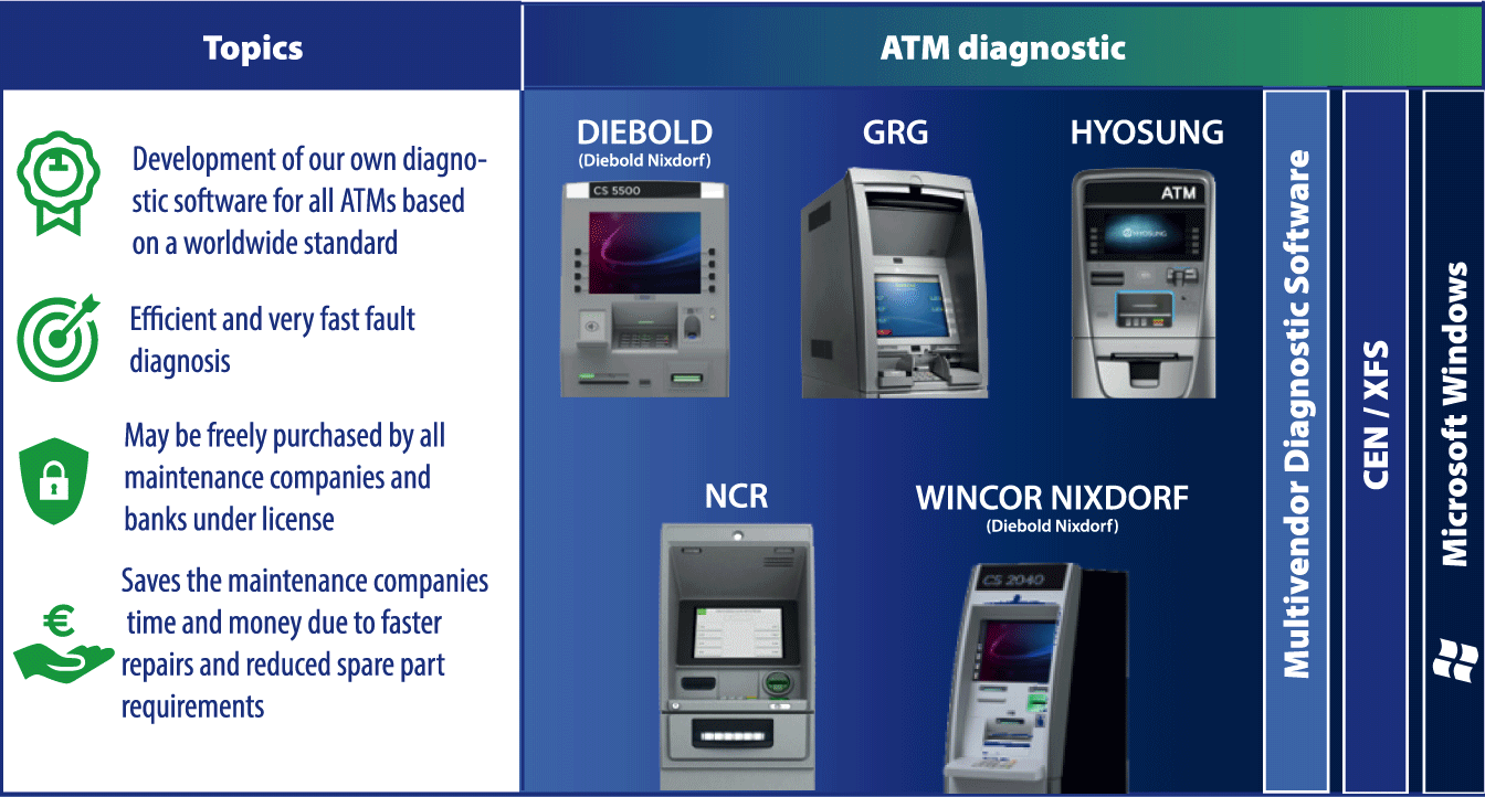 diagPRO is the first multi-vendor diagnostic software for ATMs, designed for use on ATMs from different manufacturers